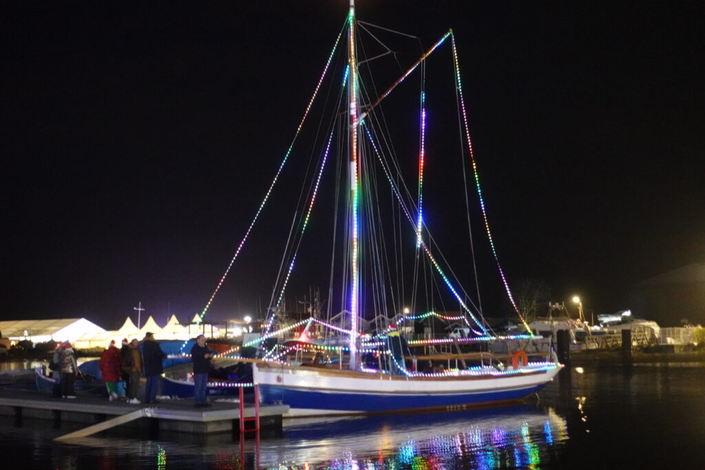 Hier soir, habit de fête pour l’Argo 2 pour son arrivée à Larros tout en lumière.