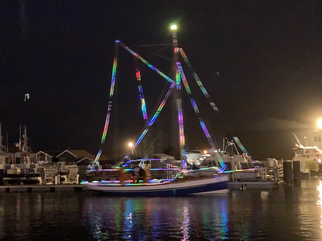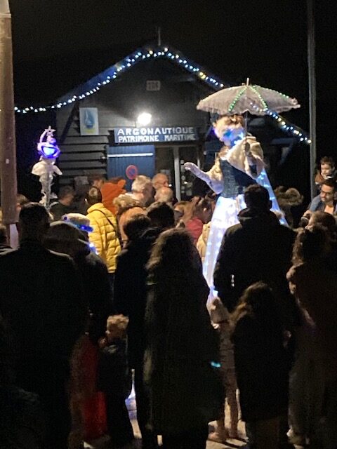 Samedi soir, suite à la demande de l’organisateur, nos bateaux illuminés de guirlandes multicolores transportaient les mascottes du village et effectuaient un petit défilé nautique dans le port de Larros, sous les applaudissements d’un chaleureux public.